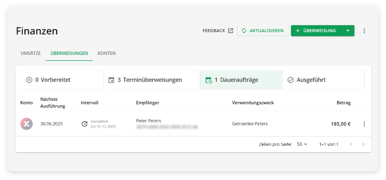 Kostenfreie SEPA-Transaktionen - unbegrenzte ein- & ausgehende (Termin-)Überweisungen und Daueraufträge