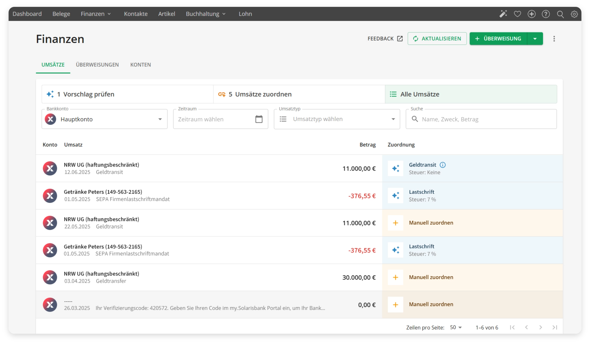 Echtzeit-Synchronisation - automatische Verknüpfung von Buchhaltung und Bankumsätzen