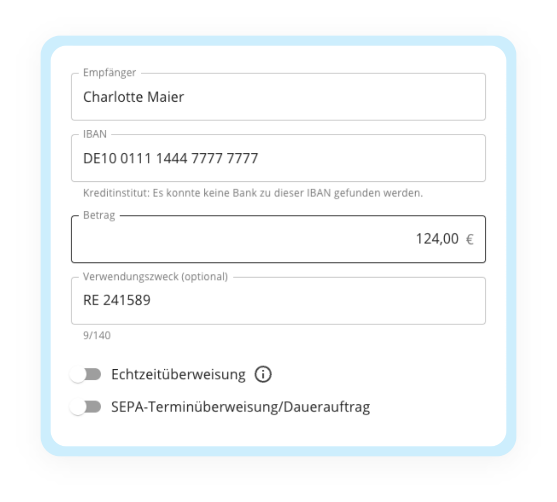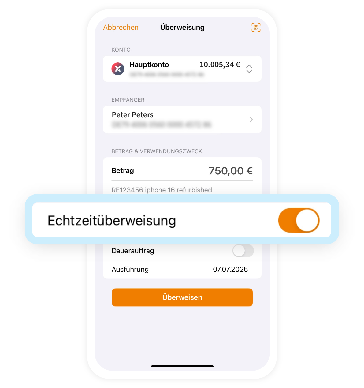 Echtzeitüberweisungen - eingehende sind sofort möglich, ausgehende 90 Tage nach Kontoeröffnung