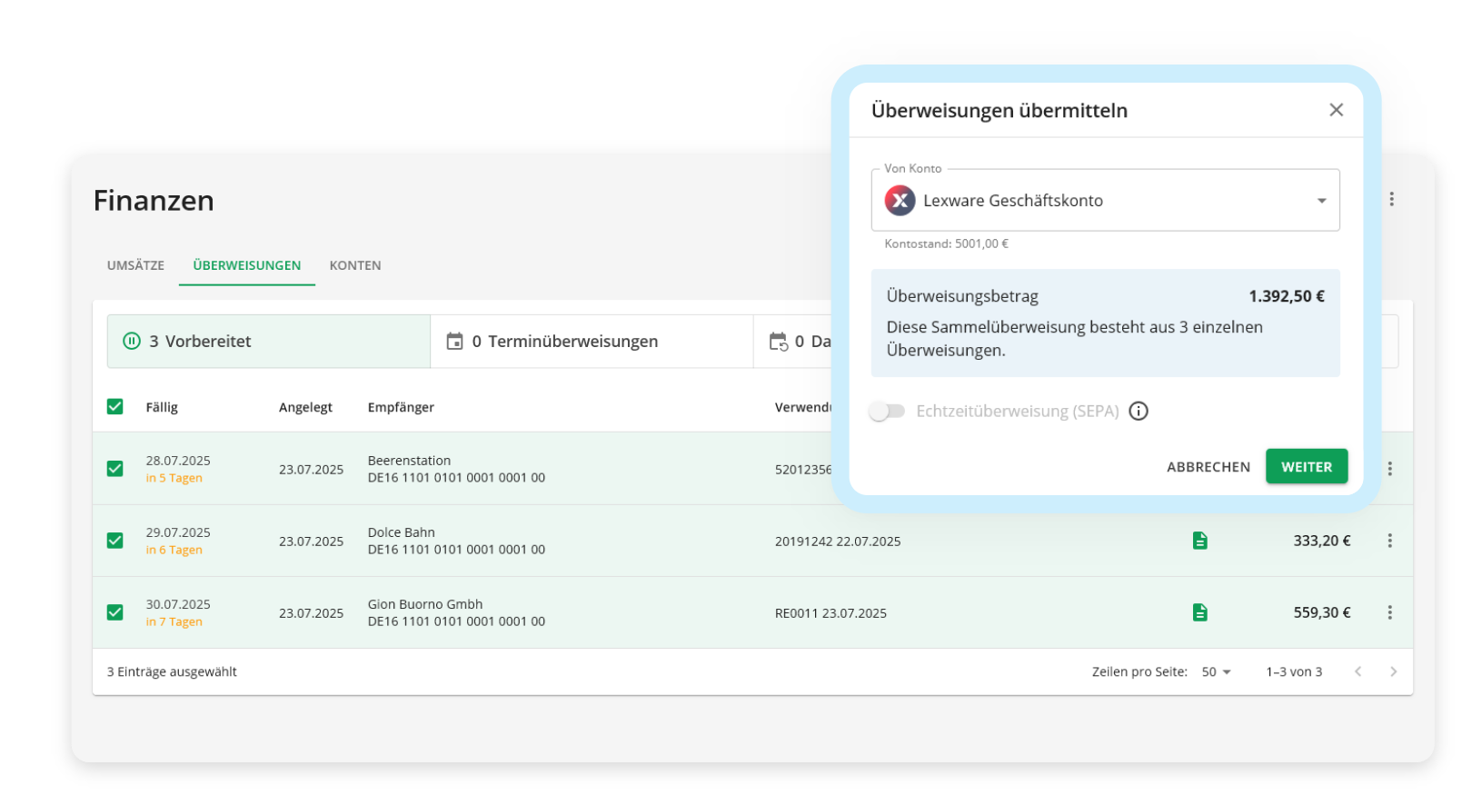 Sammelüberweisungen - zeitgleich an viele Stellen überweisen – praktisch z. B. für Löhne & Gehälter